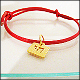 JOIA COM MANTRA VISUAL DA CABALA/KABBALAH - Pulseira ajustável, em couro vermelho, com o mantra visual da PROSPERIDADE. . ADJUSTABLE RED STRING BRACELET.
