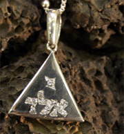 JÓIA COM MANTRA VISUAL DA CABALA/KABBALAH Pingente Triãngulo com zircônias.
