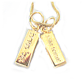 JÓIA COM SIGNIFCADO - Colar em ouro, estilo veneziano, e 2 plaquinhas em prata, Não Tema e Al Tirá, escrito em hebraico ,é uma frase muito repetida na Bíblia, que nos injeta a confiança no Criador. São 3 peças.Tam. 1cm. SILVER PENDANT AL TIRA - FEARLESS.