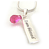 JOIA COM SIGNIFICADO - Colar em prata, estilo veneziano, com Cristal Swarowski e a plaquinha I am Blessed, Eu Sou Abençoada(o).SILVER PENDANT I AM BLESSED.