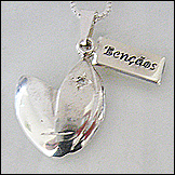 JÓIA COM SIGNIFICADO - Colar em prata, estilo veneziano, cookie da sorte, tam 1 cm, com 1 pedra zircônia e a plaquinha Bênçãos, tam. 0,6 cm. São 3 peças em prata.LUCKY COOKIE WITH BLESSINGS.PARA COMPRAR, CLIQUE NA FOTO. |