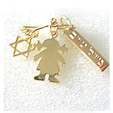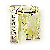 JOIA COM SIGNIFICADO - Dando as boas vindas À menininha , alfinete 2cm + menina 2cm + placa Mazal Tov - Boa Sorte 2 cm. Tudo em prata. TO A BABY GIRL, MAZAL TOV. COMO COMPRAR?Acesse a loja virtual,