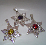 DAVID STAR SILVER PENDANT AND A YELLOW ZIRCONIA.