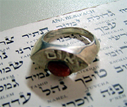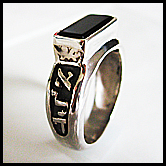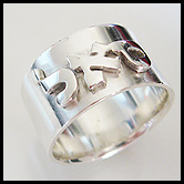 JOIA COM MANTRA VISUAL DA CABALA/KABBALAH - Anel em prata, 12 mm, com o mantra visual da prosperidade em relevo.Para saber preço, clique na foto. SILVER PROSPERITY RING. CARVED LETTERS.